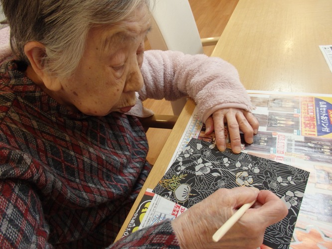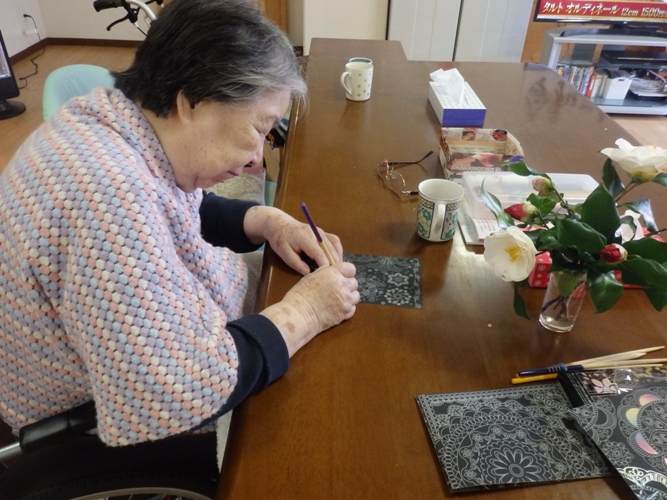 削り方により色んな模様になったり自分好みに完成させることができていま入居者様の間で大人気となっています。