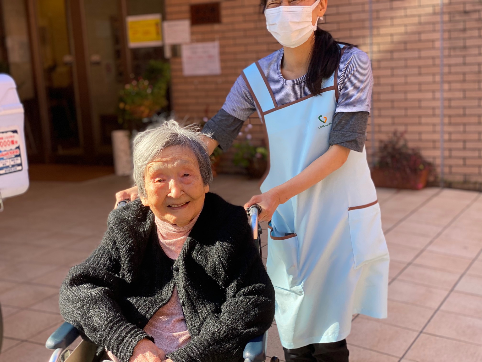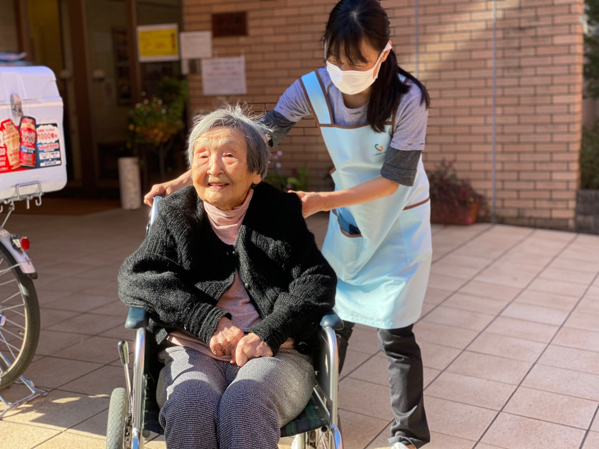 職員も玄関までではありますが、入居者様に外を感じて頂けたことがとても嬉しかったようです。
