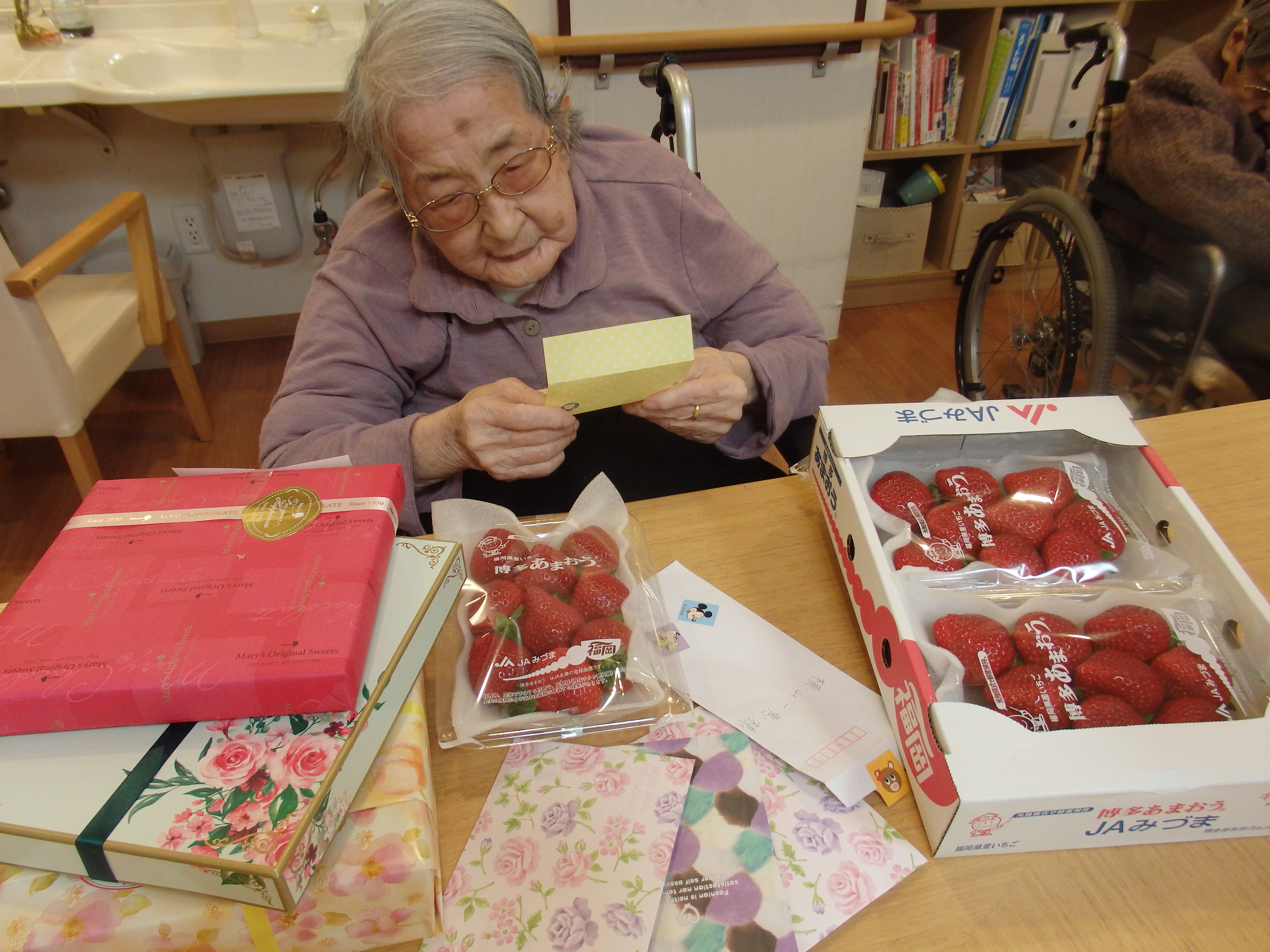 イチゴや手紙などたくさんの物が送られてきました。