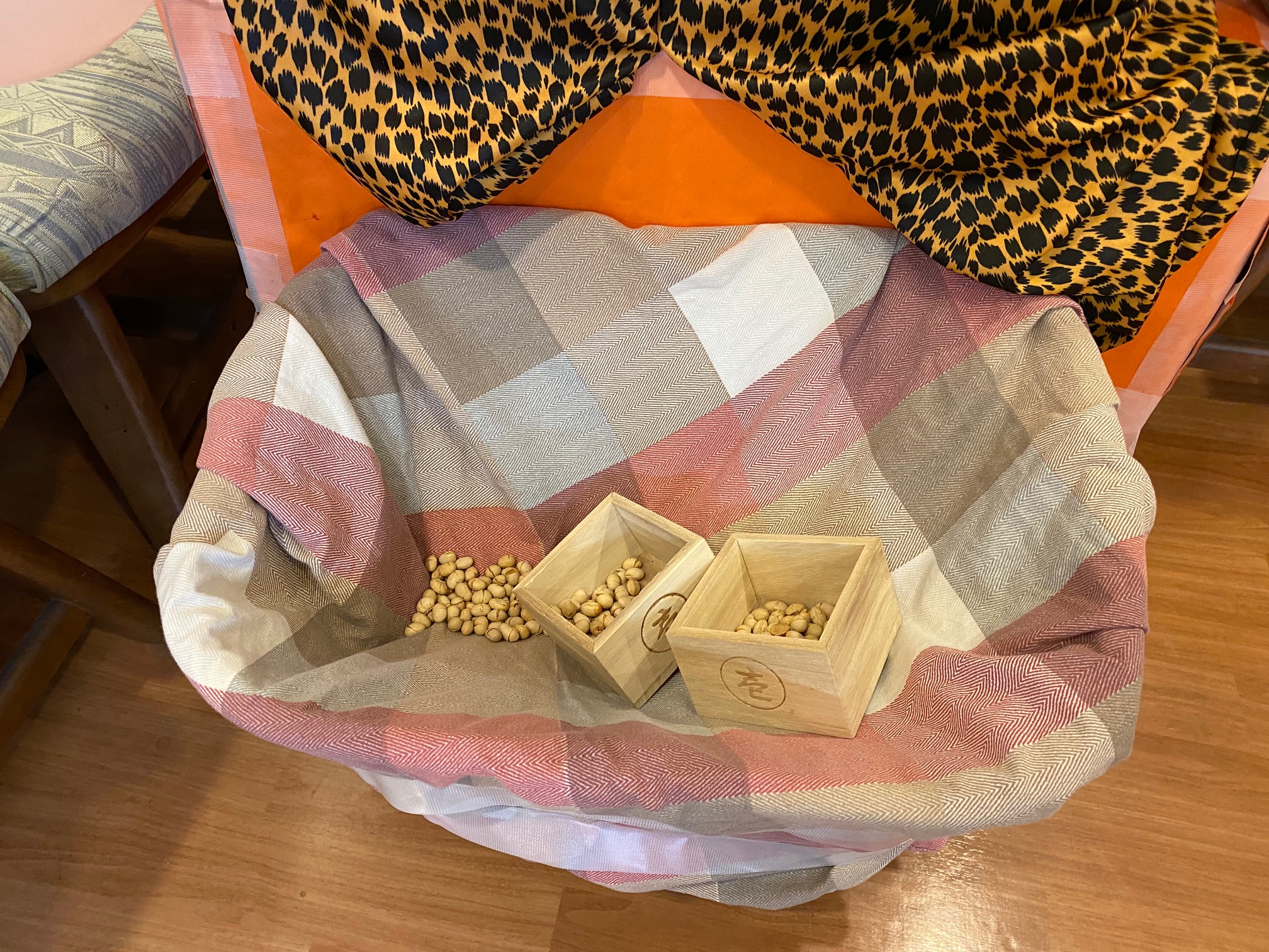 投げられた豆を回収できるバスケットがついているエコロジー設計!