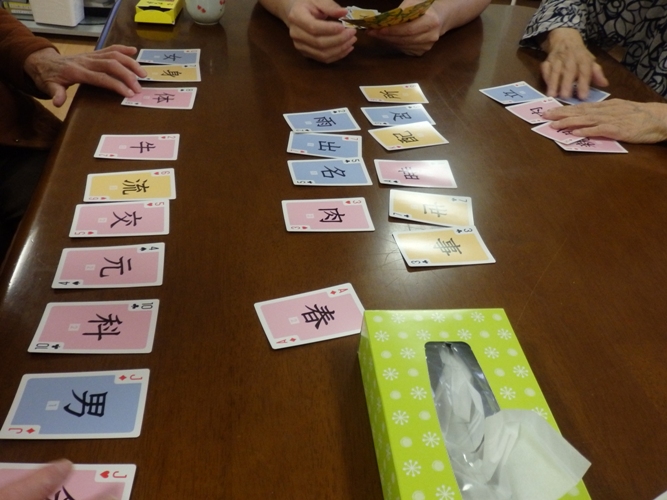 カードに一文字ずつ漢字が書かれていてそのカードを使い熟語をいくつつくれるかという遊びをやってみました。
