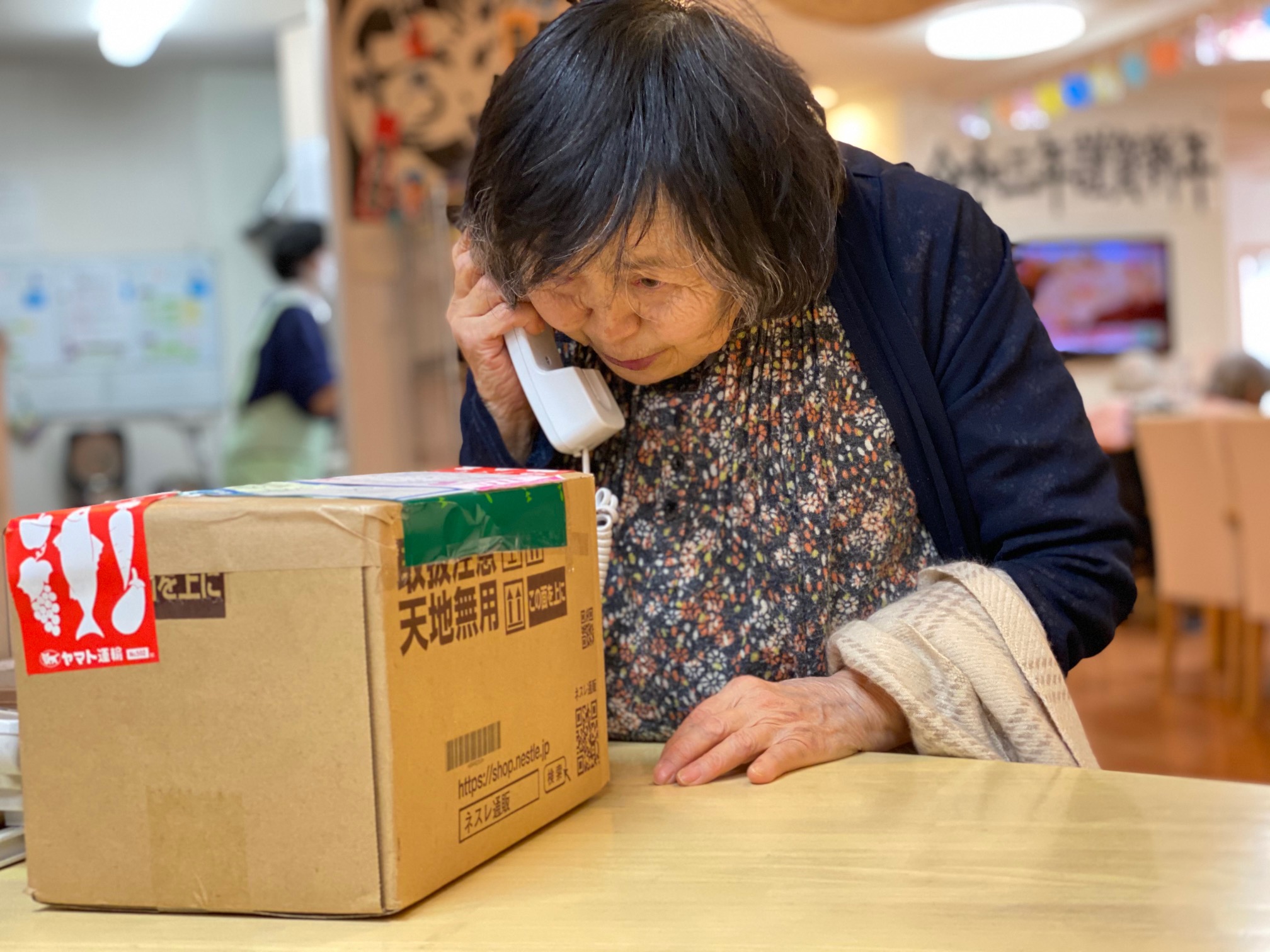 入居者様に「お荷物ですよー」とお声をかけるとすごく晴れやかなお顔をされております。