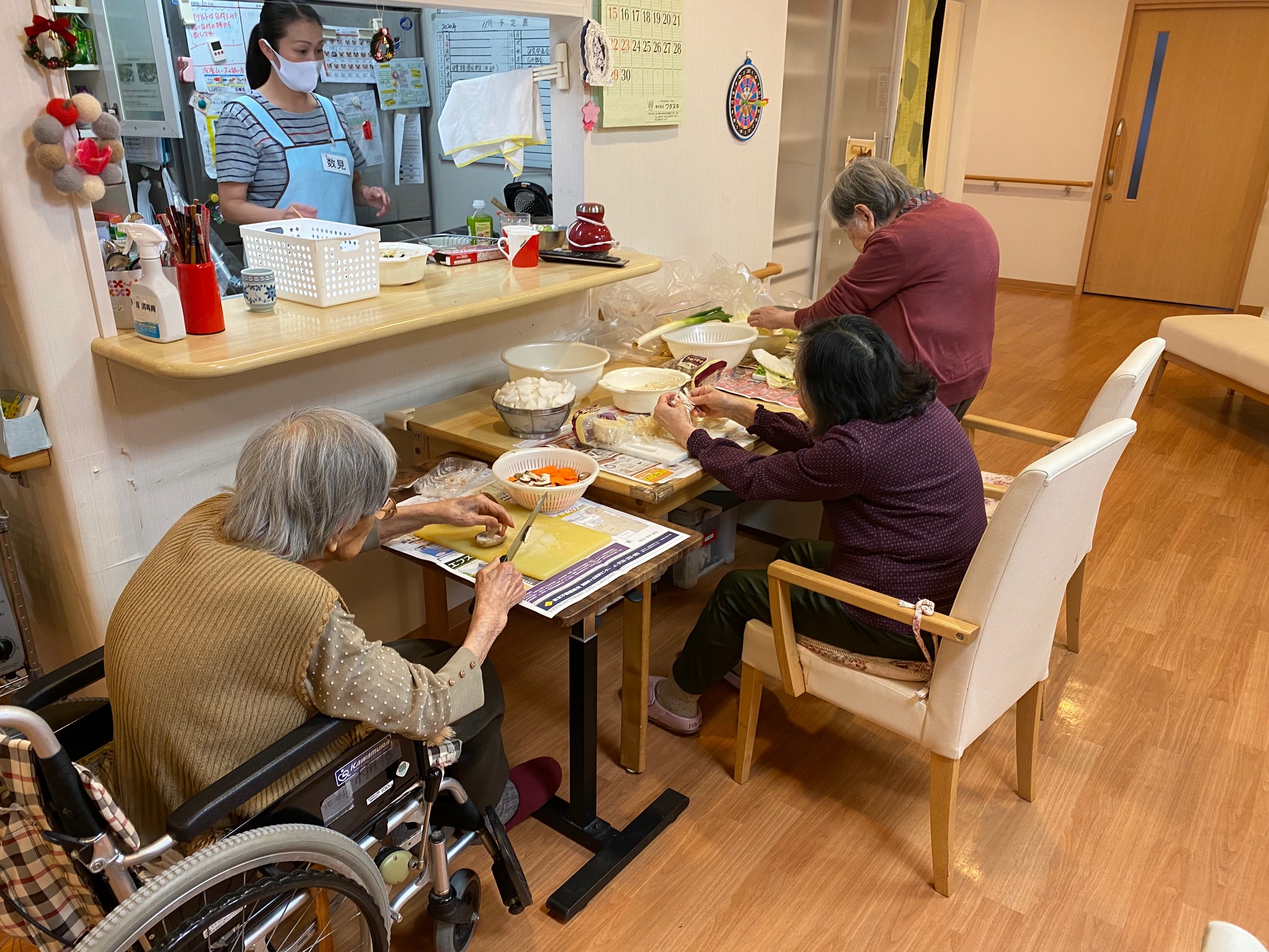 お昼に包丁を使い野菜を手際よく切られております。