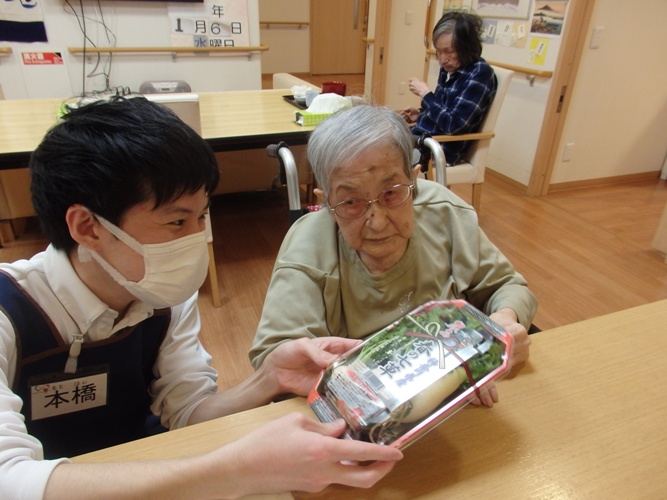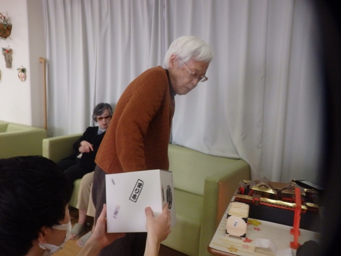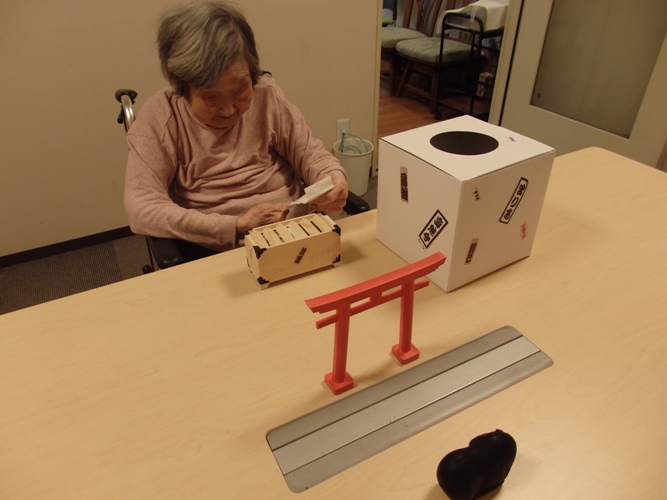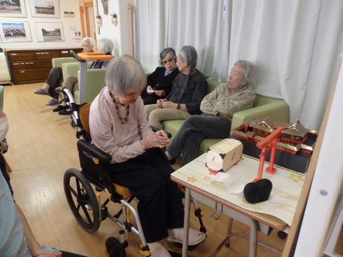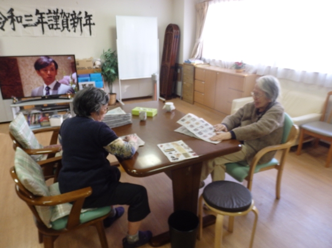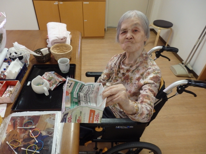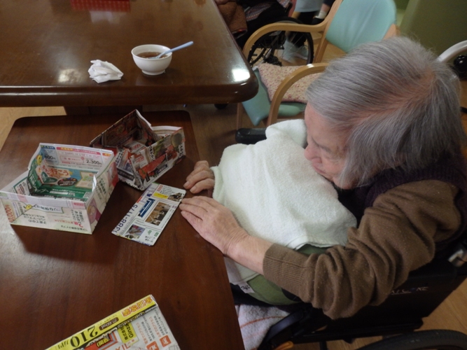 はぴねでは指のリハビリもかねて入居者様に広告を使ってチラシ折りなどして頂いています。