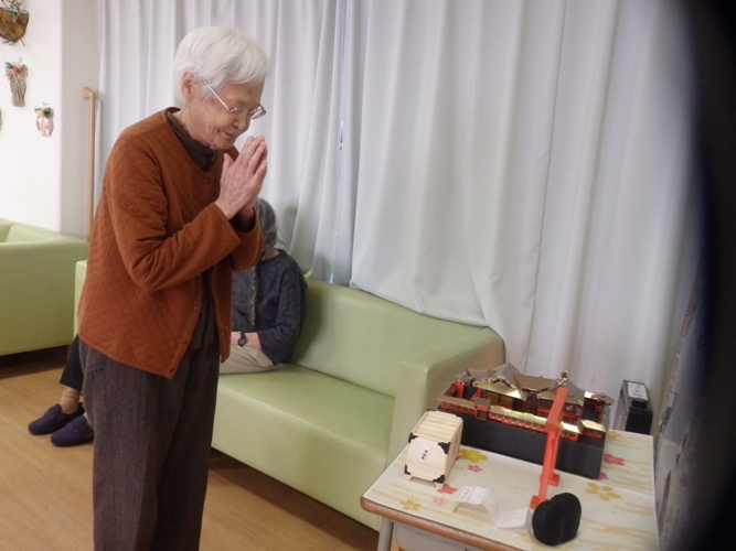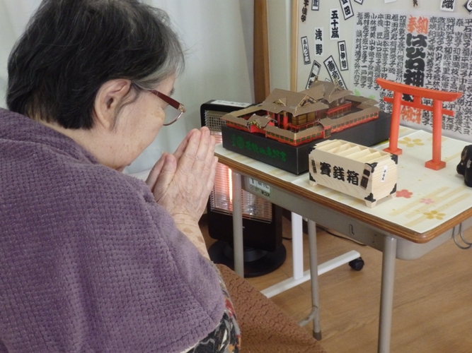 最初こそ「え~?」という反応も少し見られましたがスタッフ渾身の力作の神社を前にするととても感心され真剣に皆様お参りをすませていました。