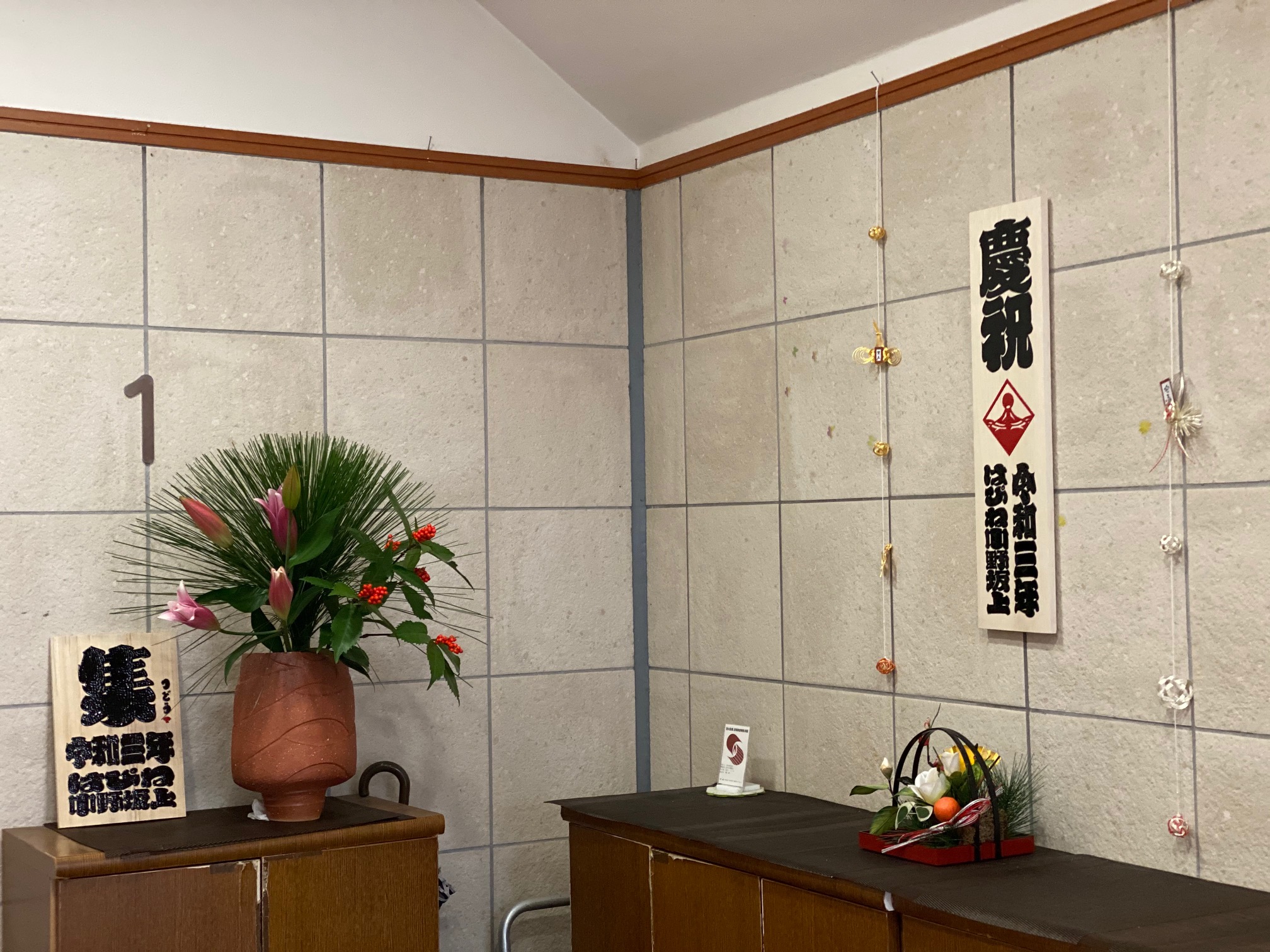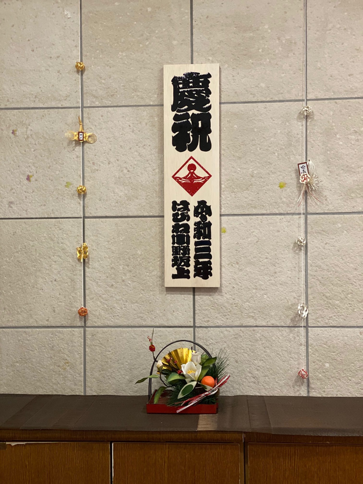 クリスマス飾りを外し、職員一同お正月飾りへと突入!
