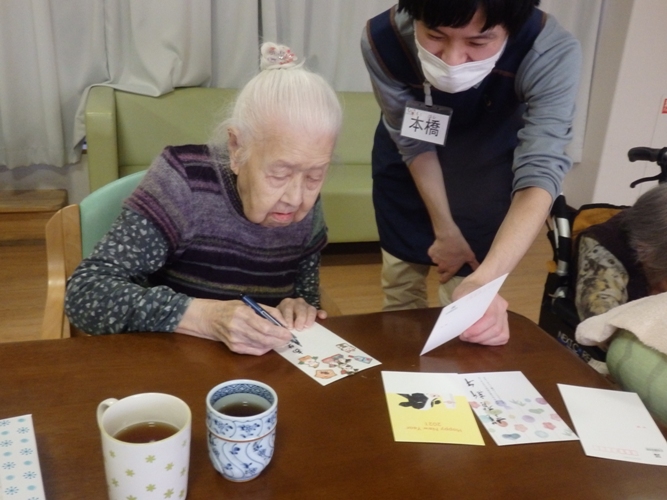 大切な人に年賀状を書きませんか?の呼びかけに皆様二つ返事で応じられ真剣な表情であえない時間を埋めるように書かれていました。