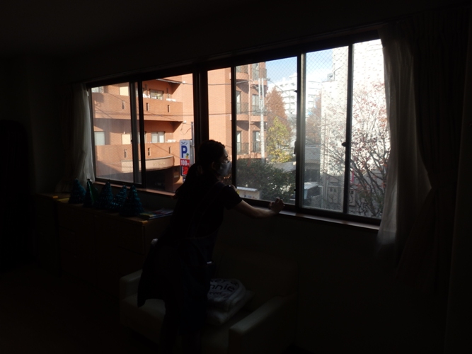 カーテンを外す係やカーテンレールを付けはずしをする係などそれぞれ得意分野で一気に行ないあっとゆうまにピカピカに!