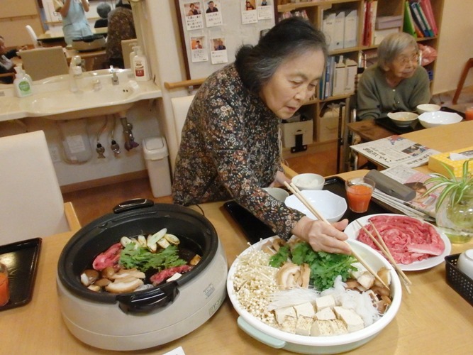 みんなで同じ鍋をつついて、といきたいところですが今日は取り分けて食べて頂きました。