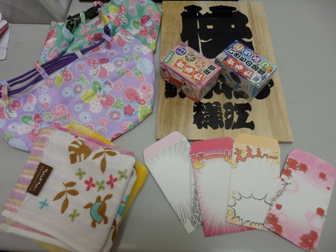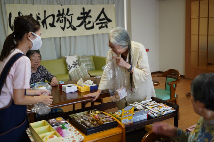一緒に素敵な柄のハンカチやきんちゃくなどもプレゼントすると大喜びで、童心に帰ってお菓子を選ばれていました。
