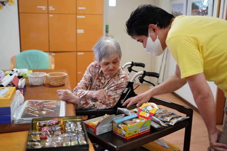 あるフロアでは入居者様にくじを引いて頂きお菓子を自由に選べるおかし抽選会などもおこないました。