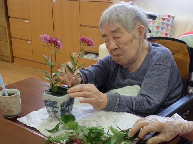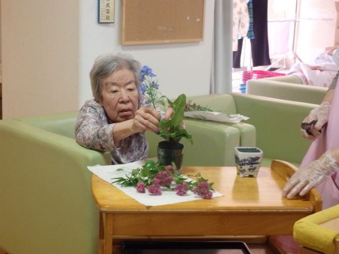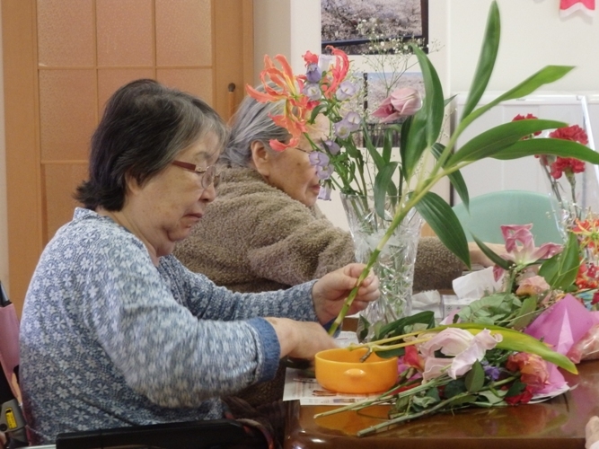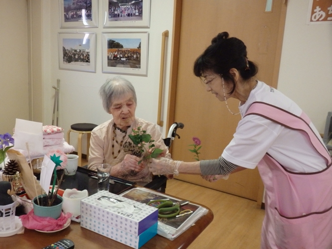 本日も入居者の方達とご一緒にお花の一斉活け替えです。