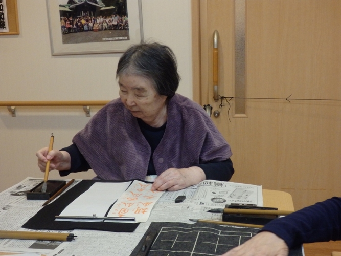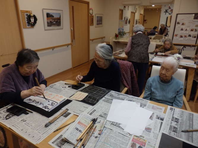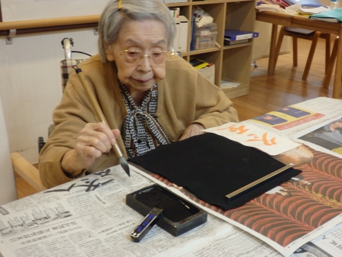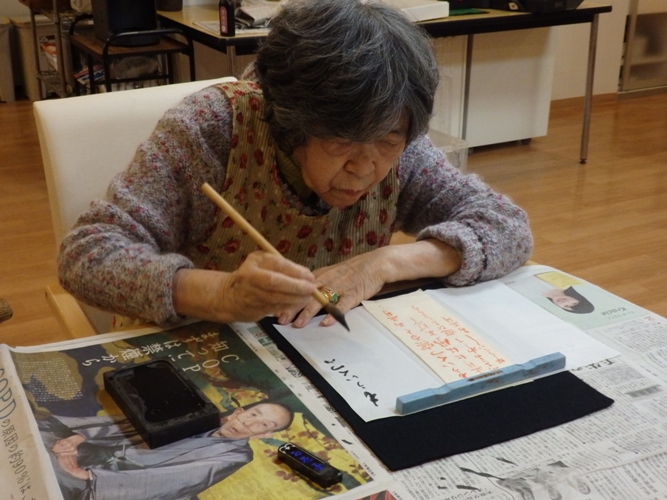 みなさん真剣な表情で今年最後の習字の会を行なわれました。