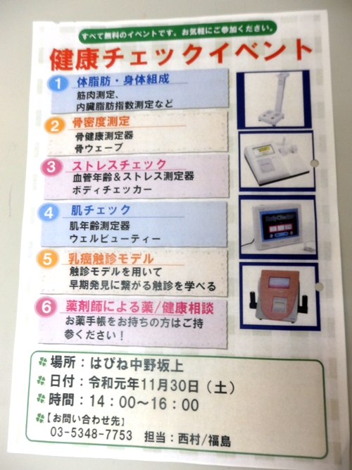 11月30日土曜日にはぴね中野坂上では健康チェックイベントを行ないます。