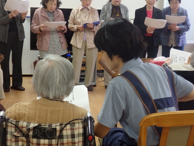 本日の唄の会レクリエーションでは秋の歌を中心に皆さまと唄いました。