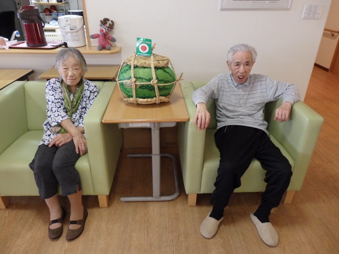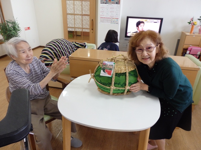 浴衣を着て花火見物、よく冷えたスイカをがぶり!
