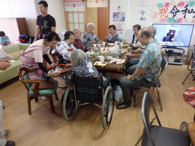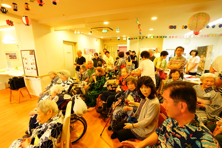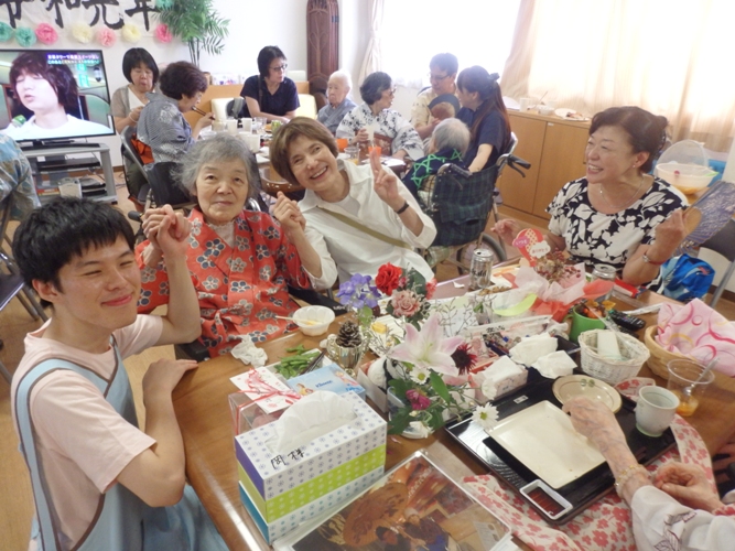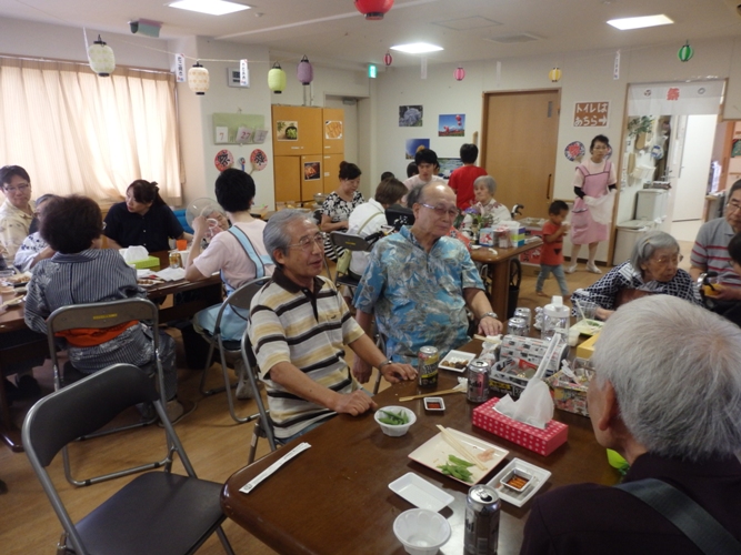 今日は入居者さまも浴衣に着替えて頂きお祭り気分を終日味わっていただいています