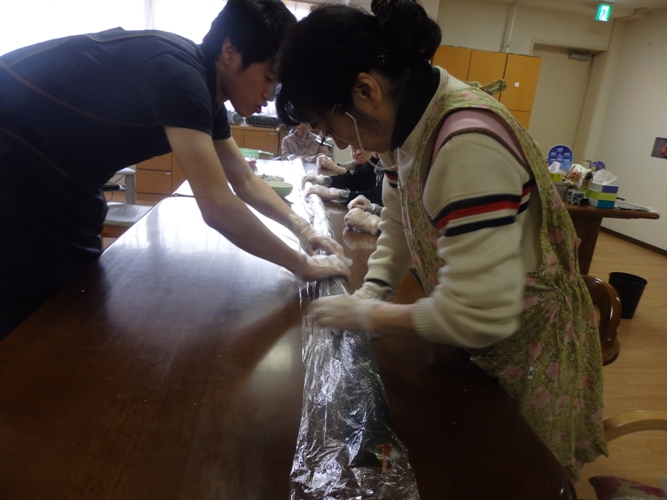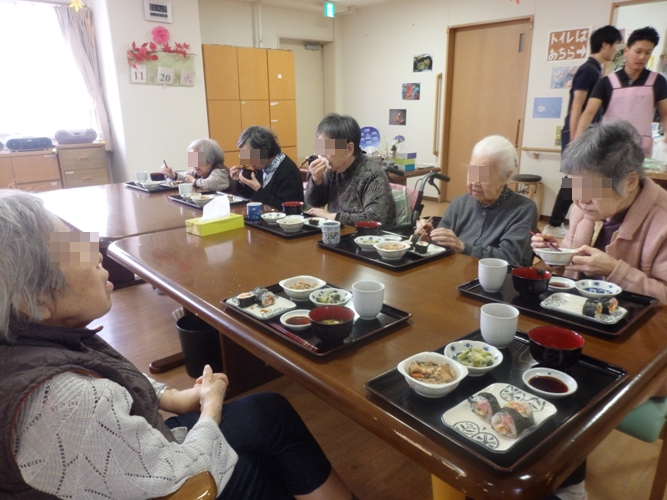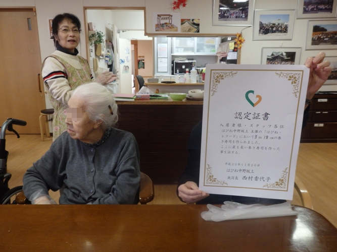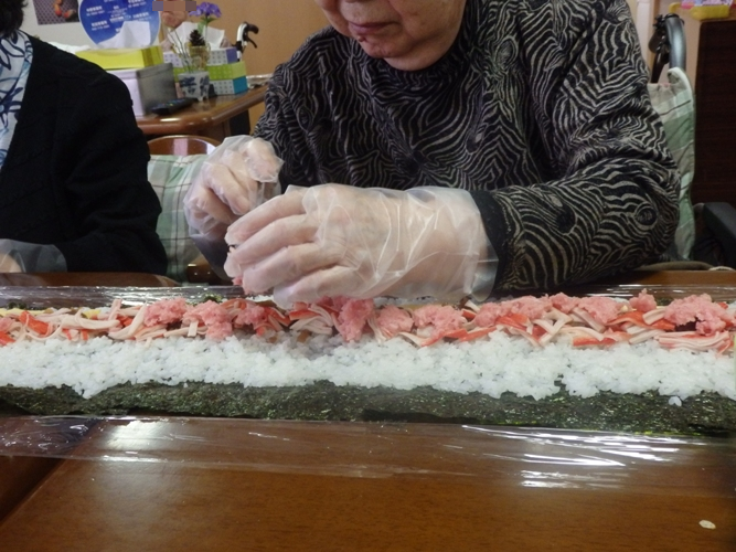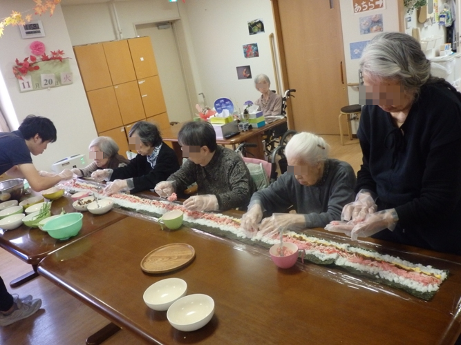 今日は入居者様みんなとギネス記録に挑戦です!みんなで長い海苔巻に挑戦しました!
