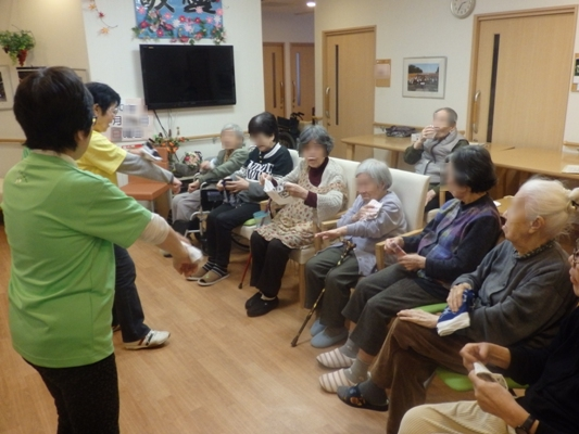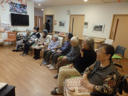 寒さにまけないように今日はみんなで音楽療法に参加です!