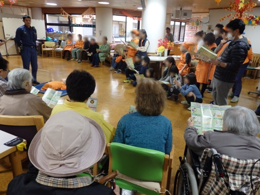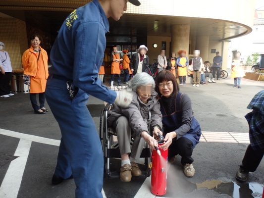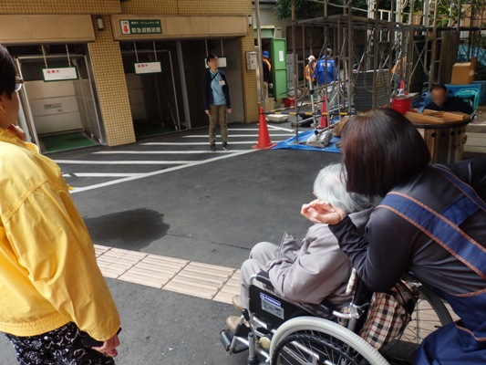 今日は向かいのホームで行われている地域の防災訓練に参加してきました。