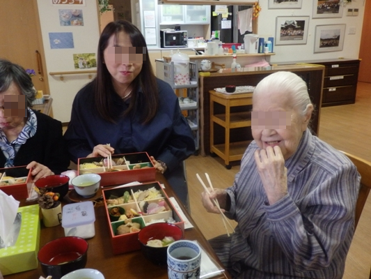 最近食欲があまり見られなかった入居者様もご家族と一緒になると食欲も戻りお弁当をペロリと召し上がっていました。