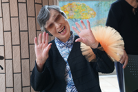 はぴね中野坂上の入居者様も玄関先に出て旗やボンボンを振って応援してくださり、RUN伴に参加されたすべての