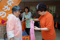 入居者様もテーマカラーのオレンジを身に付け、タスキをつなぎました。