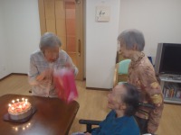 ご家族様がお帰りになった後は、ご入居者様同士でのお祝いをし、交流の時間も楽しまれました。今回もまた誕生日がスペシャルな一日になったようです♪