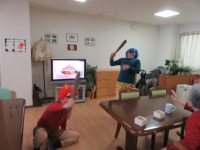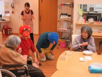 お部屋で休まれていた方の元へ鬼が勇んで行った所、ベッドから起きられたその方は床に座って深々と「よくぞ来て下さいました」とお礼を申し上げ、鬼がかしこまってしまうほどの威力を発揮する新手の鬼撃退法を披露されていました。(笑)