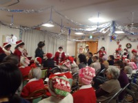 昨年同様今回も藤村女子中学高等学校児童文化部の生徒さんに来ていただき、ハンドベルコンサートを行い、ご家族様、地域の方にも大勢ご参加いただきましたので狭いフロアリビングがごった返していました。(笑)