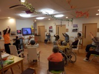 音楽健康指導士のインストラクターさんと画面に併せて歌って、踊って♪