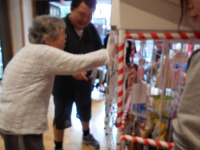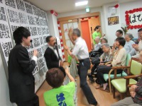 恒例の出し物、ヒゲダンスは職員だけではなくご入居者様、ご家族様も参加していただきます。今回はゴムパッチン、もぐらたたきで大盛り上がり!力のこもった叩きっぷりをみると日頃の鬱憤がたまっているかのようです。(笑)