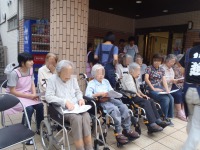 19日は敬老会でしたが、18日は地域の氷川神社の例大祭!毎年、地域の皆様のご好意で、施設前で御神輿を揉んで頂きます。今までは旧正面玄関前に来て頂きましたが今回は新正面玄関で初めてのお神輿でした。