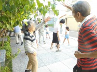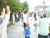 早い時間帯にもかかわらず地域の方々が老若男女、50名ほどは集まっていたでしょうか。毎年好評のようですね。皆様、おなじみの音楽に合わせて身体を動かされていました。