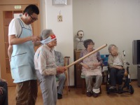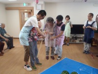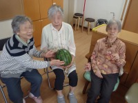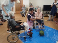 大きなすいかを前にして腕を鳴らすご入居者の皆様!(笑)