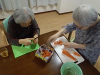 前回の写真は短冊に願い事を書いていただいたり、野菜を星型に型抜きしていただいたりしているところでした~。(笑)