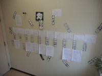 3ヶ月間各々の課題(モチベーション)取り組みを発表、階段踊り場に貼り出して視える化。