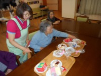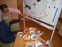 遊びながら楽しいひと時の演出。1位になった方は無欲の勝利です!でも皆さん喧嘩も無くお好きな銘菓を選んで美味しいおやつを頂くことができました~。(笑)