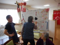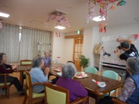 「♪チャンチャーン、チャカチャカ、チャンチャンチャカチャカ…」リズムに乗ってあみだくじが進みます。「下、右、下、左…そっちじゃない!」とご入居者様。いつの間にかヒートアップしています。(笑)