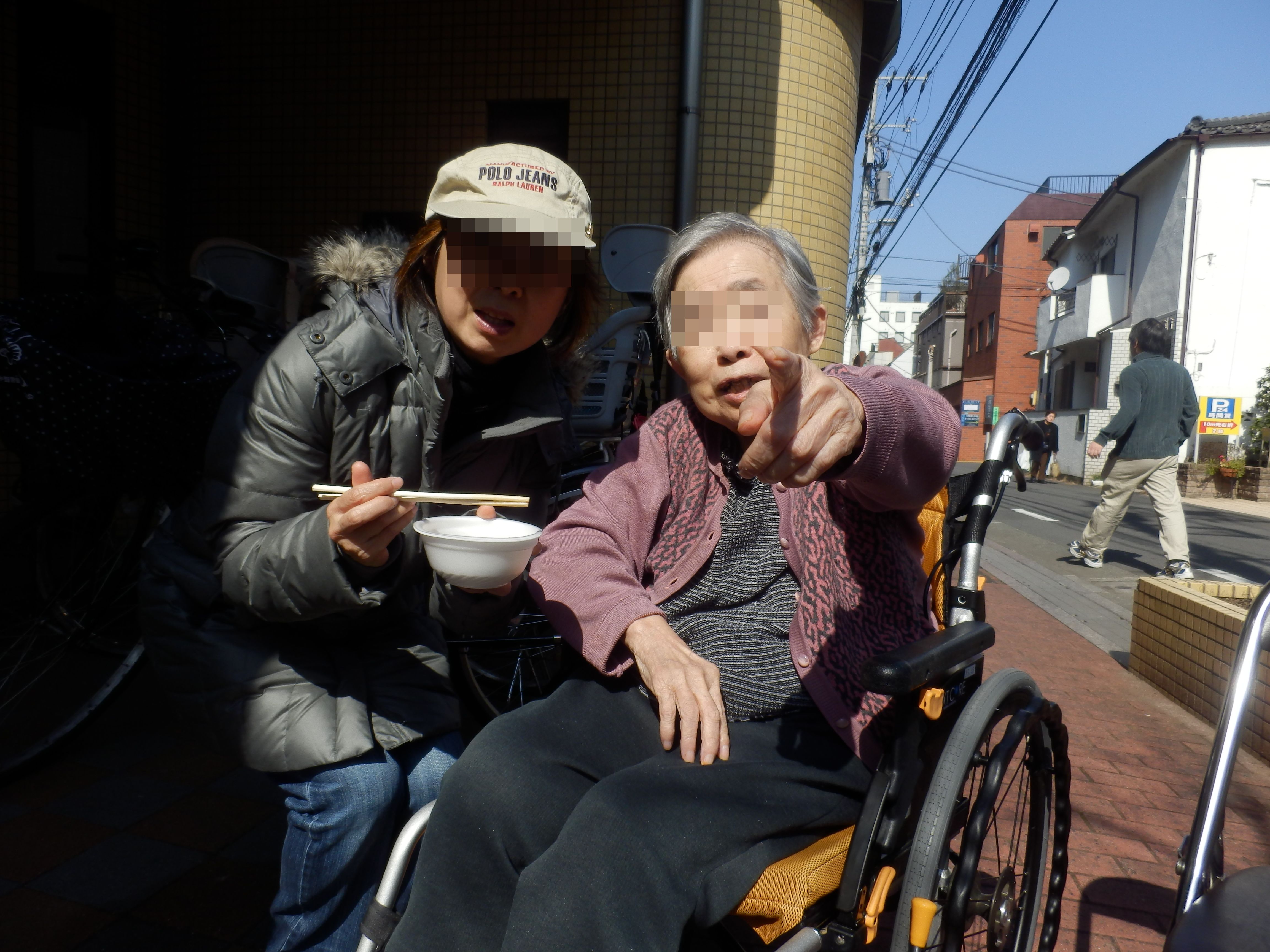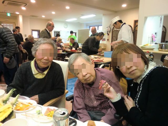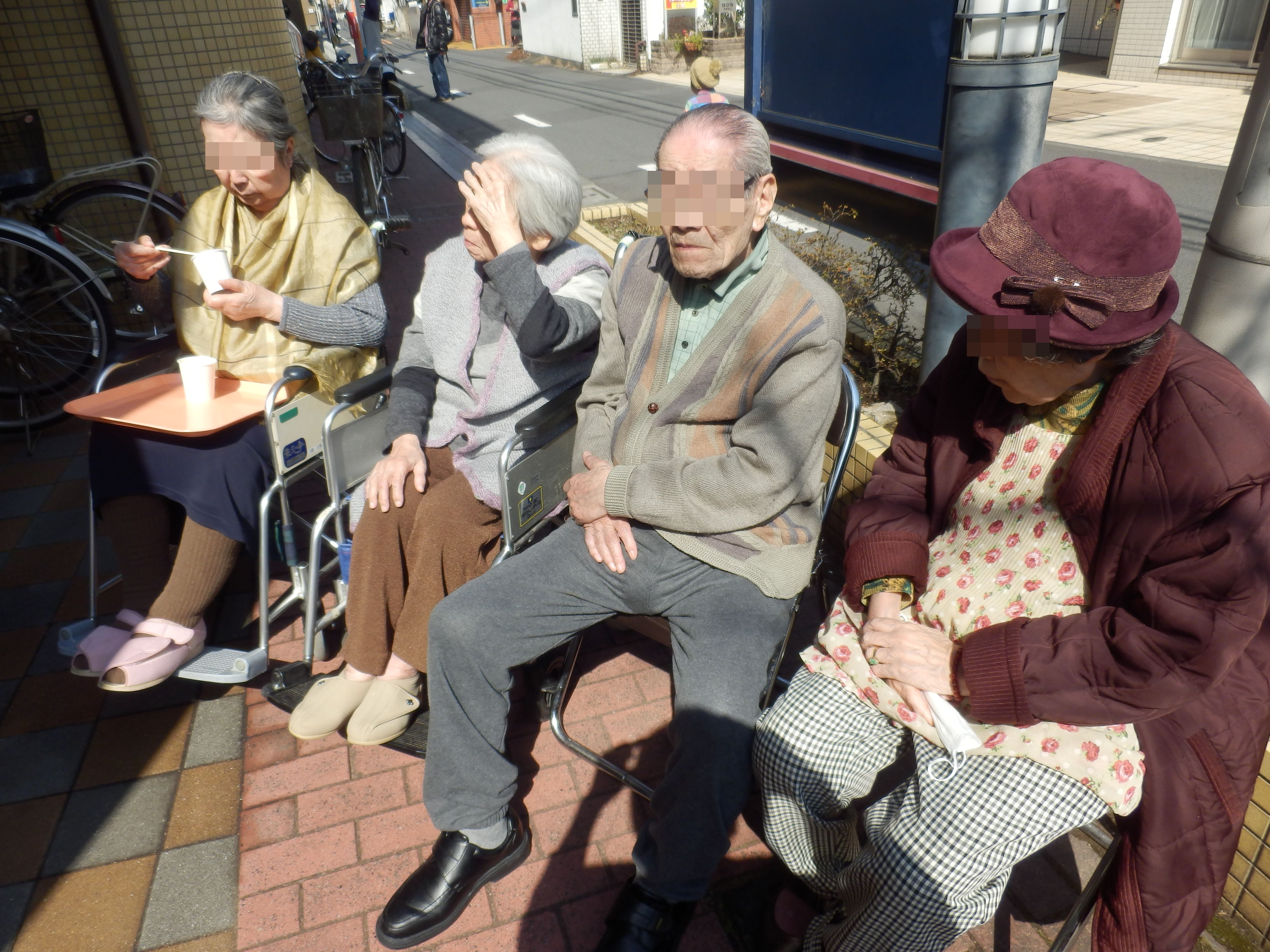 老若男女入り乱れて大賑わいの中、町会の皆様から特別なご配慮をいただき、「ホームの皆さんで」と別盛りで搗き立てのお餅や甘酒をいただくことが出来ました。ホームからも7名のご入居者様、ご家族様が参加され、格別な搗き立て餅や甘酒を美味しくいただきました。♪匂いや味、雰囲気などをお届けできないのが残念です。(笑)