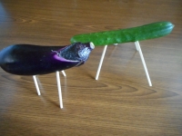きゅうりとなすを用意して、きゅうりが馬、なすが牛で精霊馬を作ります。