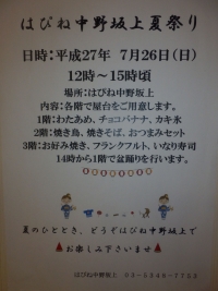 来る、7月26日(日)に「はぴね中野坂上夏祭り」を開催いたします!