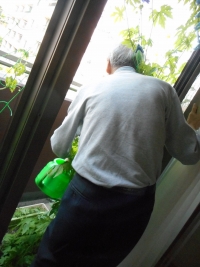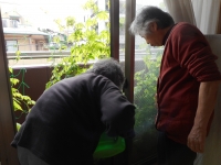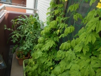 5月から2階と3階のベランダで西日対策としてグリーンカーテンを始めました。