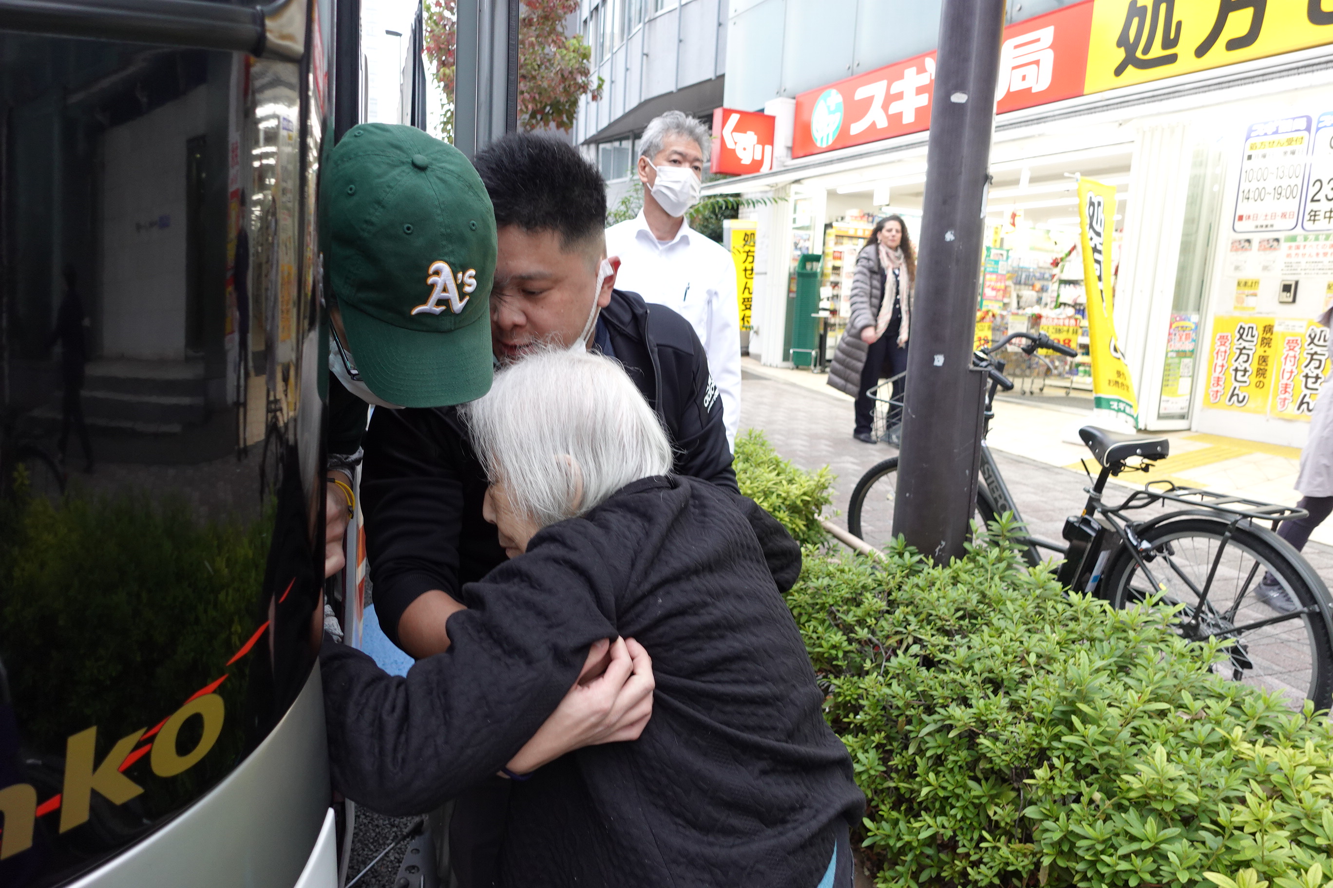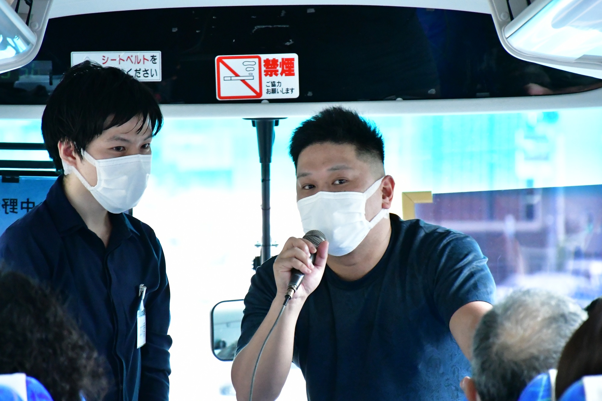 お一人ずつ、足元に気を付けながらバスにご乗車いただいて