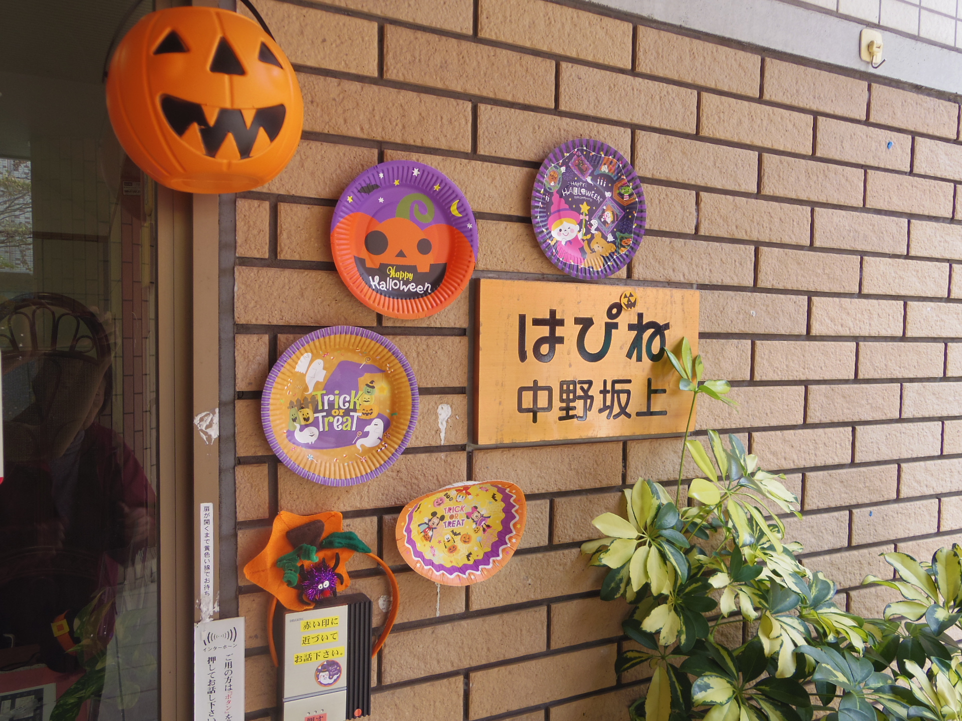 本日は、ハロウィン仕様になったはぴね玄関前で