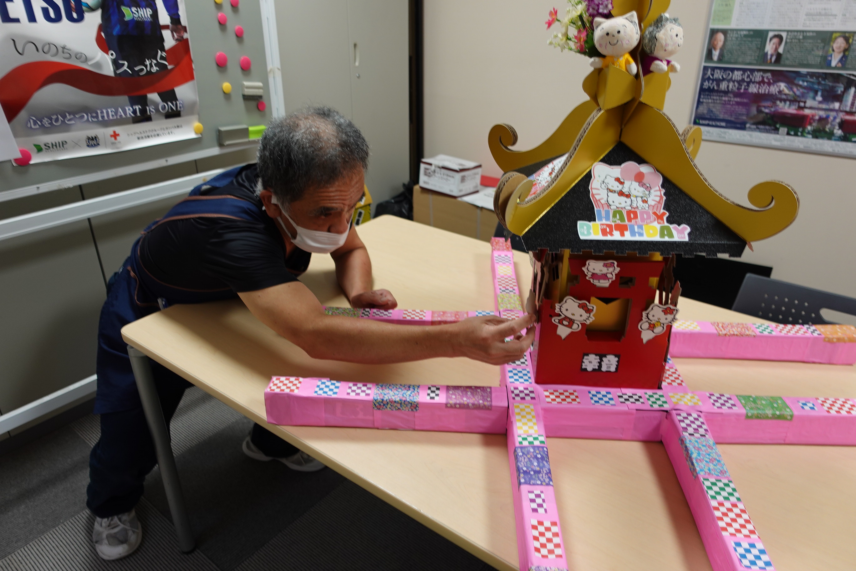ハローキティおみこしの制作の様子です。