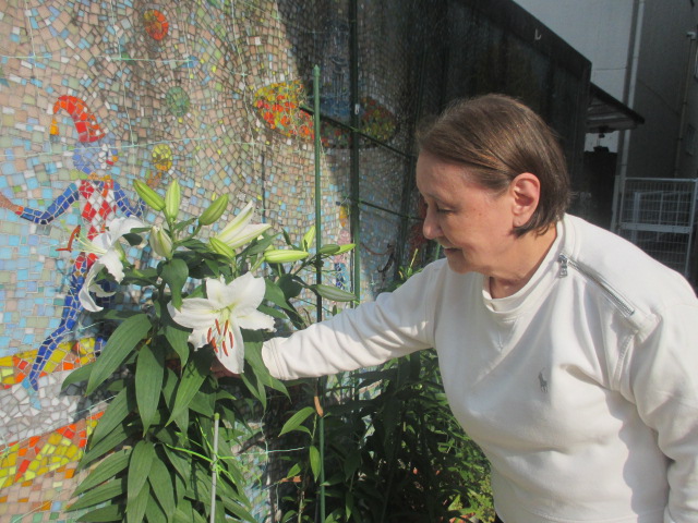 1階の玄関に植えている百合の花がちょうど満開です♪