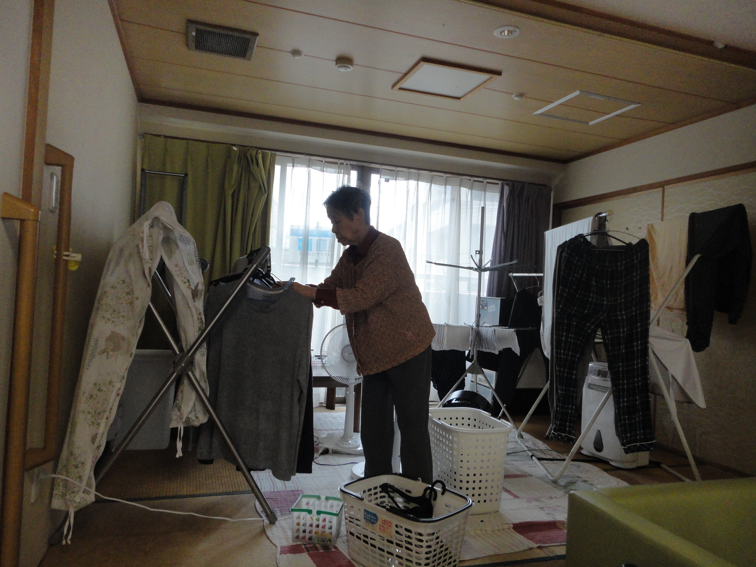 こちらのお元気な入居者様も毎日洗濯物干しや食器洗いを