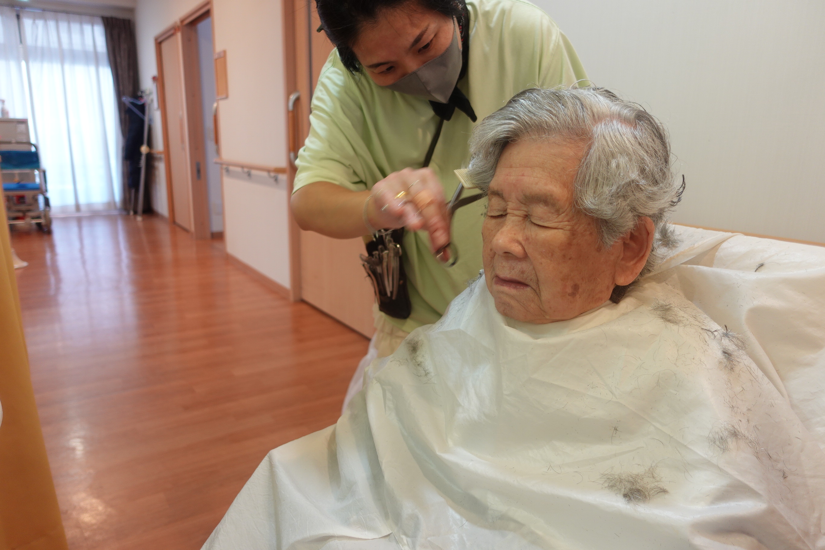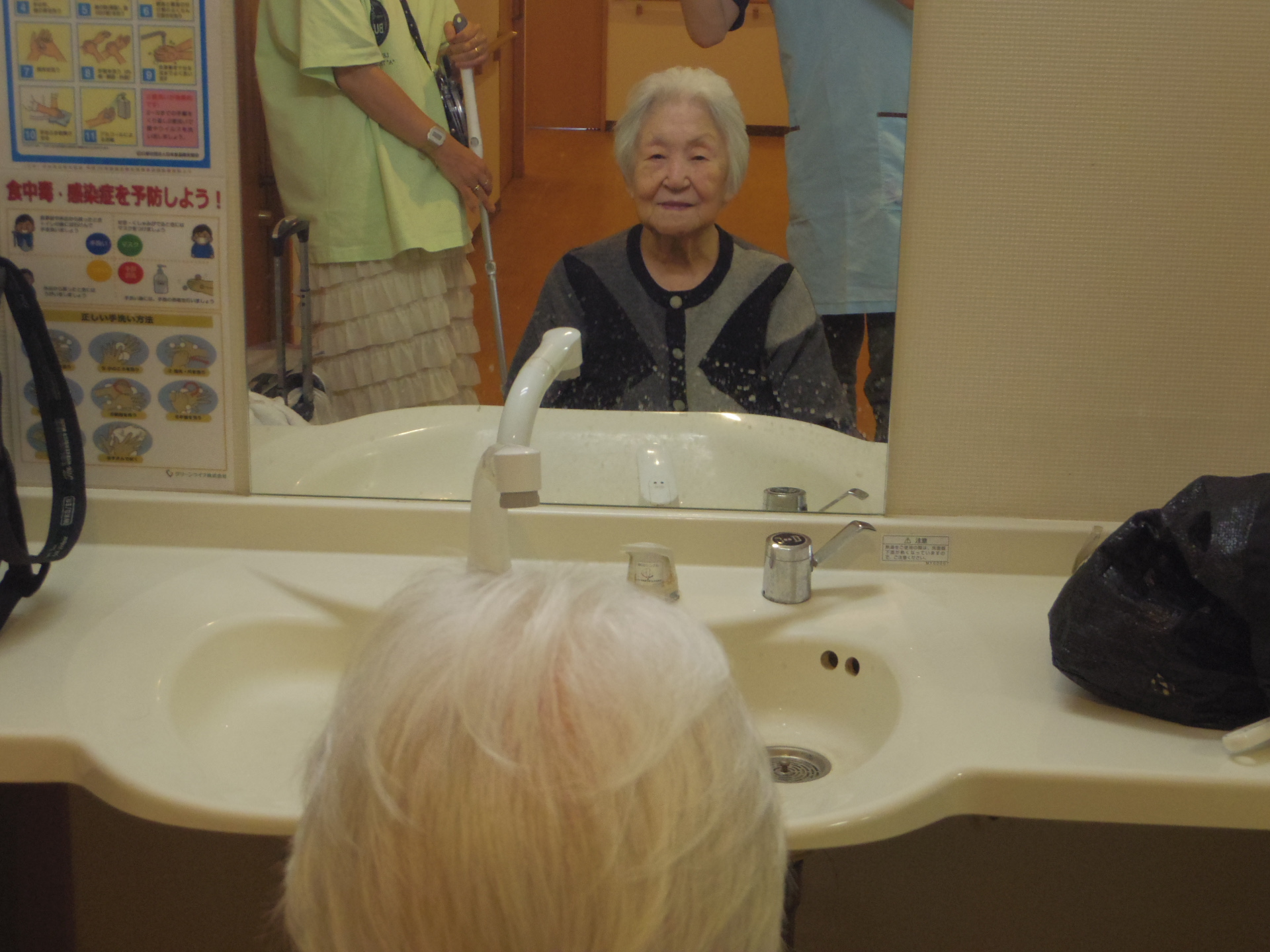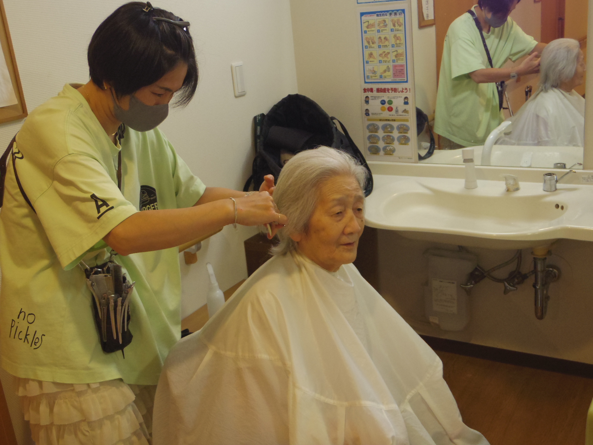 各フロアの入居者様も夏の間にすっかり伸びた髪を