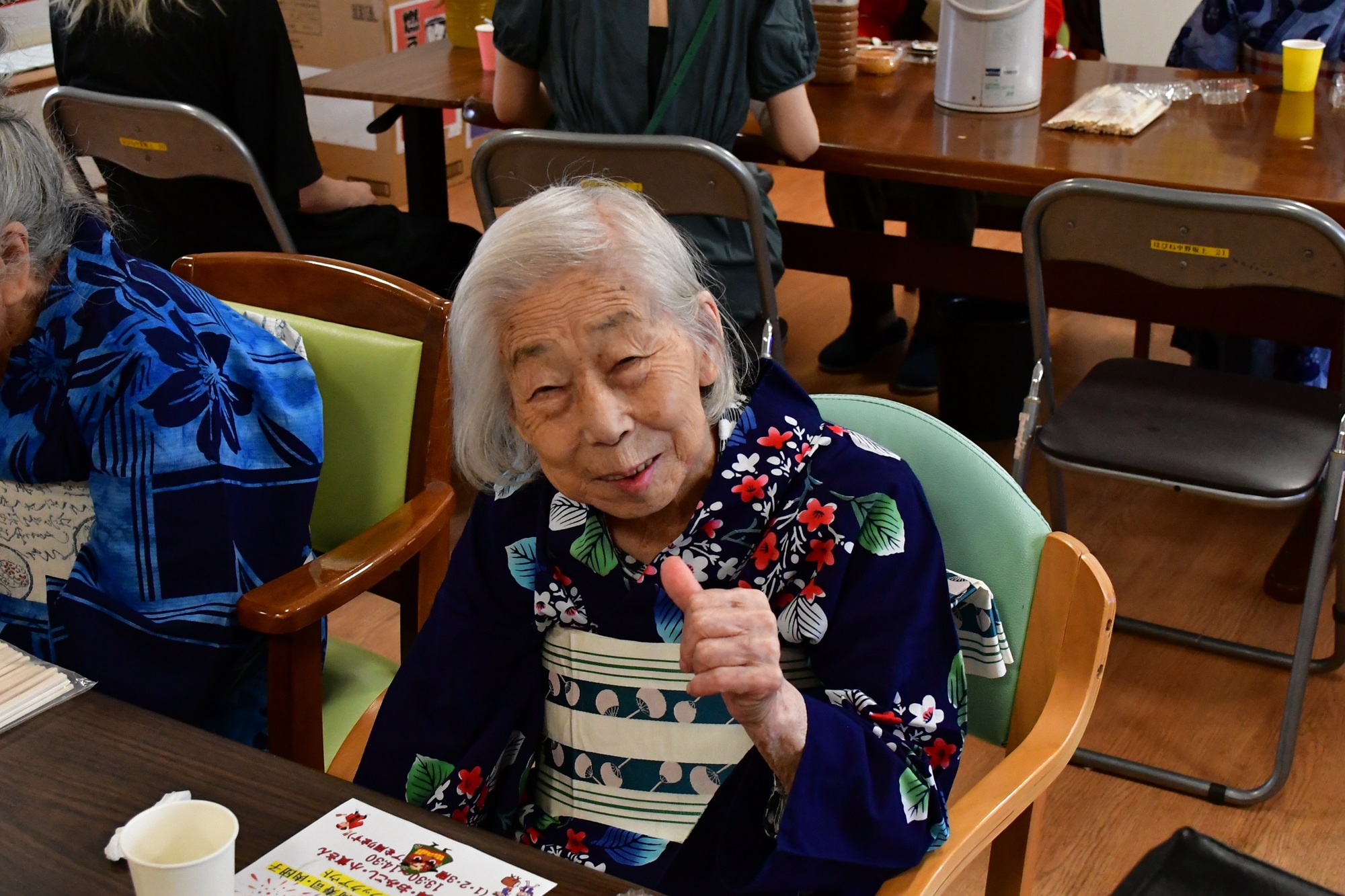 スタッフと入居者様もはっぴ・浴衣を着てバッチリお祭り気分!